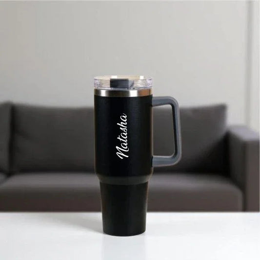 Personalized Black Tumbler with Handle & Lid 1200ml