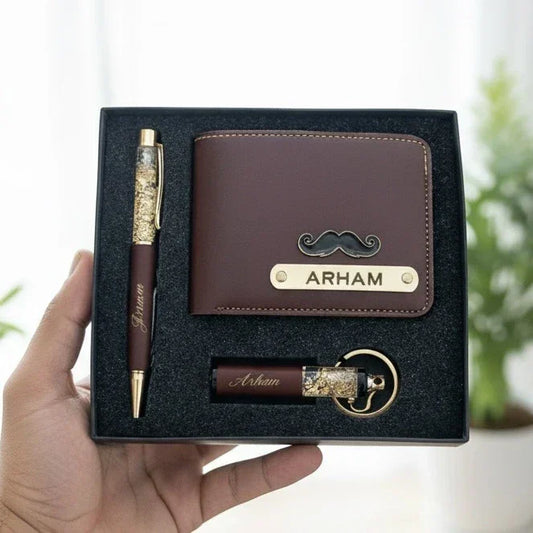 Personalized Wallet Pen Keychain Zari Combo for Men