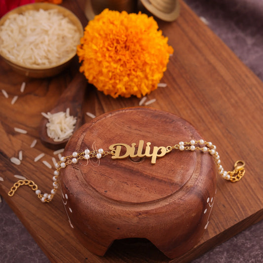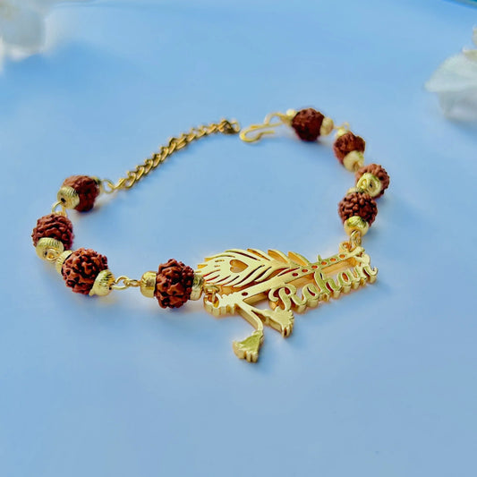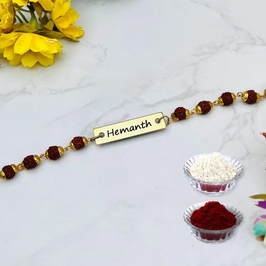 Customized Gold Plated Rudraksh Name Rakhi