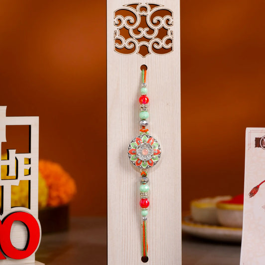 Bhaiya Bhabhi Rakhi Combo Set with Wooden Cutout