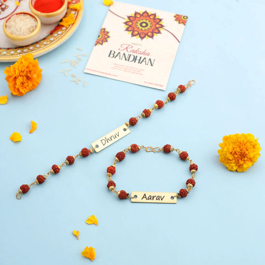 Engraved Metal Name Rudraksh Rakhi for Brother