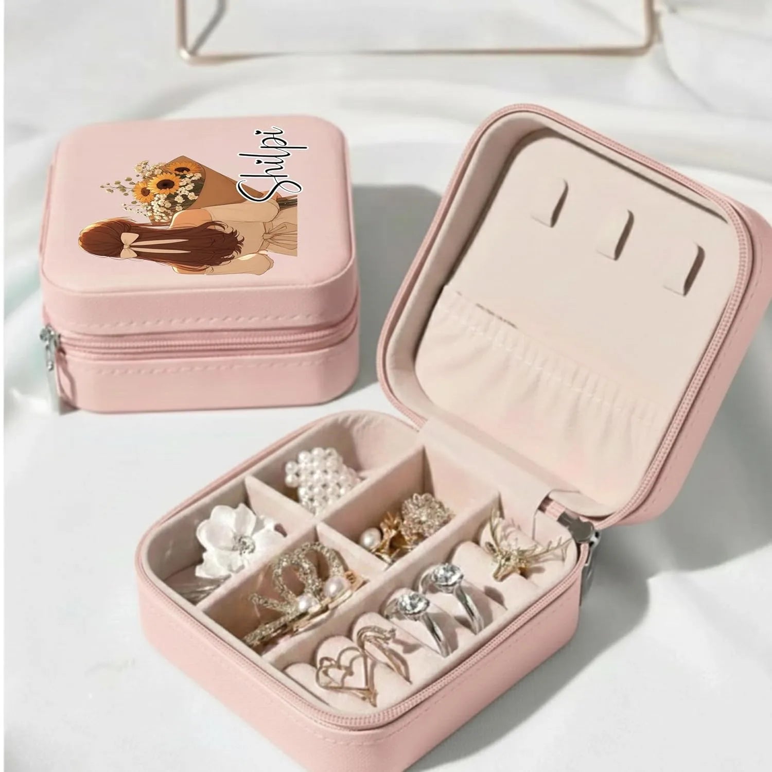 Our Illustration Style Personalized Jewellery Box is designed to keep her favourite jewellery safe, organized, and beautifully stored.Featuring soft pastel tones, charming girl illustrations, and custom name printing, this jewellery box makes a thoughtful gift for birthdays, anniversaries, or special moments.